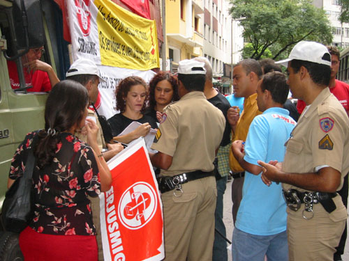 Concentrados na Porta do TJMG, os servidores começaram a sentir os efeitos da repressão: Policiais Militares, sob a ameaça de prender o caminhão de som, determinaram o desligamento dos microfones. Mas, dispostos a continuar a luta, as lideranças providenciaram um megafone, e continuaram a liderar o movimento, não permitindo que a voz do servidor fosse calada.