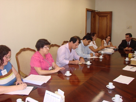 Abrindo a reunião, antes da chegada do presidente do TJ, Maria Cecília e sua assessora Márcia Alvim expuseram os dados relativos ao orçamento e à verba custeio do TJMG.