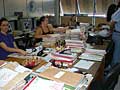 Clique nas fotos para ampliar Na parte interna do imóvel, por sua vez, é possível verificar que o espaço das Secretarias é insuficiente, obrigando servidores a compartilharem mesas de trabalho e computadores, além de ser difícil o transito interno e mínima a ventilação.