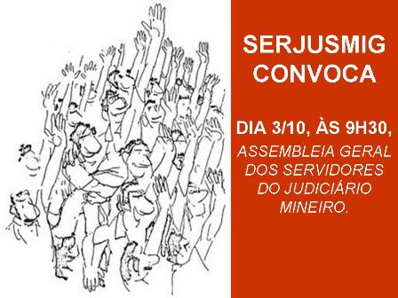 DIA 3/10, ÀS 9H30, TEM ASSEMBLEIA GERAL DOS SERVIDORES DO JUDICIÁRIO MINEIRO!!!
