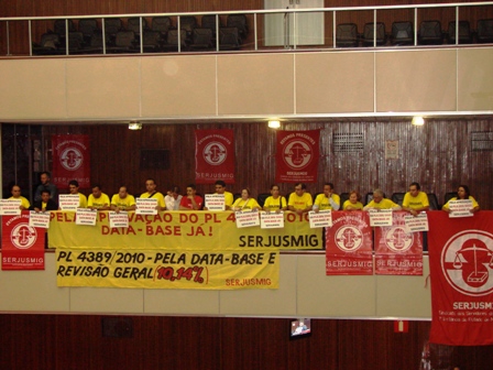 Na sessão do plenário de ontem à noite, a ALMG aprovou o projeto que institui a data-base dos servidores, porém, em sua forma original (enviada pelo TJMG), ou seja, sem a revisão geral de 10,14% proposta e aprovada nas comissões temáticas (emenda).
