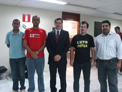 Representantes do SERJUSMIG e o dep. Délio Malheiros após reunião da Comissão de Administração Pública