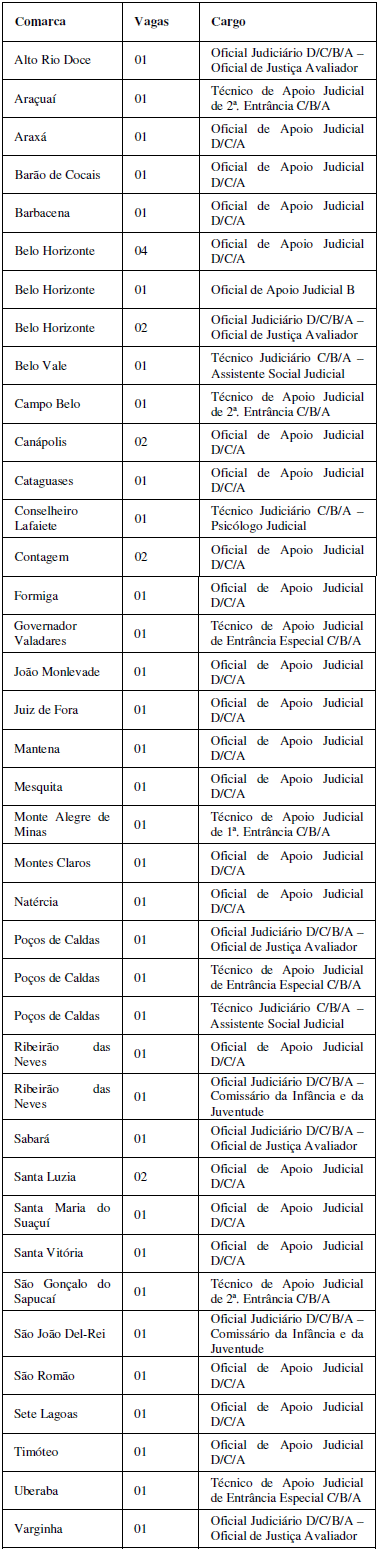 Publicado no Diário Judiciário Eletrônico de quinta-feira (6/8), o edital de Remoção 07 estabelecendo abertura das inscrições e do processo seletivo para preenchimento de vagas no Quadro de Pessoal da Justiça de Primeira Instância do Estado de Minas Gerais.