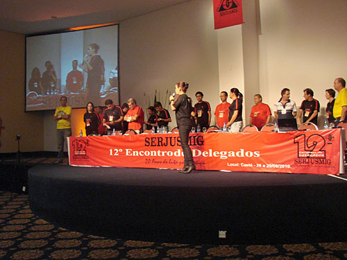 12º Encontro SERJUSMIG: é de delegados? Sim, e determinados! Na manhã deste sábado, 28/8/2010, a clareza, o interesse e a participação – sempre com a marca do empenho e da transparência – já apontavam a qualidade dos trabalhos que se seguiriam à tarde. Esse vislumbre se concretizou. Afinal, os quase 500 delegados de todo o Estado de Minas Gerais voltaram ao (enorme) Auditório Azul com a mesma admirável disposição que já mostravam nos dias anteriores (o evento teve início na noite da quinta, 26/8/2010, no Hotel fazenda Tauá: leia cobertura completa de cada “turno” no site antigo.serjusmig.org.br).