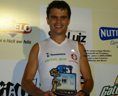 Incentivo à prática de esportes como instrumento de promoção da saúde e de integração da categoria. O SERJUSMIG aposta nesta proposta. Os competentes e talentosos atletas da Justiça Mineira patrocinados pelo NOSSO Sindicato testemunham tal investimento. Aliás, investimento este que tem se mostrado bastante lucrativo. Afinal, temos acompanhado o crescimento do número vitoriosos, em seus respectivos campos de atuação (na área desportiva), entre aqueles a quem NOSSA entidade patrocina. O SERJUSMIG se orgulha de ser responsável por tal incentivo. Mas o maior orgulho, mesmo, é proveniente dos resultados de NOSSOS atletas que sobem ao pódio. Entre os merecedores de aplausos, podemos citar a recente vitória do colega Wesley Guimarães Barbosa, Oficial de Justiça de Ribeirão das Neves, que, em 16/10/2010 (foto) chegou em 5º lugar (na classificação-geral) e em 1º lugar (categoria 31 a 40 anos), na “Meia Maratona (21Km) do Sol Poente”, em Fortaleza/Ceará.