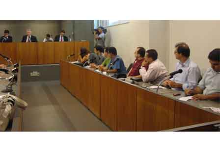 Estabelecer uma boa interlocução com parlamentares recém-eleitos para a Assembleia Legislativa de Minas (ALMG), visando a ampliar o espectro de futuros apoiadores a projetos de interesse dos servidores da Justiça. Foi com tal PENSAMENTO que, na tarde desta quinta-feira, 3-2-2011, os vice-presidentes do SERJUSMIG, Luiz Fernando Souza e Rui Viana compareceram a uma reunião com o novo Bloco de Oposição “Minas Sem-Censura” (composto por PT, PCdoB, PMDB e PRB).A participação dos representantes do NOSSO Sindicato atendeu a um convite do novo líder do grupo,o deputado Rogério Correia (PT). Este, há anos, é um leal parceiro das lutas do funcionalismo estadual. A reunião contou também com a presença de outros representantes de movimentos sindicais/sociais do Estado. Um dos principais pontos em debate foi a questão das “LEIS DELEGADAS” (projeto do governo Anastasia, aprovado em 2010, que amplia poderes do Governo Estadual), bem como a possibilidade de Ação Judicial contra atos baseados em tal Legislação. Na oportunidade, aproveitou-se para fazer a apresentação de recentes membros do novo bloco (cujos trabalhos oficiais tiveram início terça, 1º/2, com a abertura da 17ª Legislatura da ALMG /de 2011 a 2014, que também contou com a presença de um representante do SERJUSMIG, detalhes no final deste texto).
