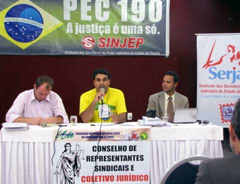 João Pessoa (Capital da Paraíba) é o cenário em que foi realizado o “3º Conselho de Representantes Sindicais e o 4º Coletivo Jurídico da Federação Nacional dos Servidores do Judiciário nos Estados (Fenajud)”. No evento, iniciado dia 23/3/2011, NOSSO SERJUSMIG foi representado pelo Primeiro Vice-Presidente, Luiz Fernando Souza. As atividades do encontro ocorreram até o domingo 27/3.