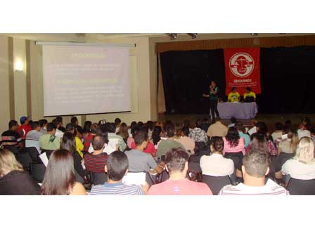 Garantir a manutenção da integridade do Plano de Carreiras (PC) do servidor do Tribunal de Justiça de Minas (TJMG). Foi com este pensamento que, na manhã deste sábado 9/4/2011, os servidores da Primeira Instância trocaram ideias numa “Reunião Ampliada” convocada pelo SERJUSMIG. O encontro foi realizado no auditório do colégio Monte Calvário, em Belo Horizonte. No local, companheiros e companheiras de várias comarcas mineiras uniram forças e ideias, todos com um propósito singular: LUTAR PELA INTEGRIDADE DE NOSSO PC. A reunião foi aberta, por volta das 10h30, pela presidente do nosso Sindicato, Sandra Margareth Silvestrini, acompanhada, à mesa, pelos dois vice-presidentes, Luiz Fernando Souza e Rui Viana. Sandra agradeceu aos participantes, além de saudar aos dirigentes e conselheiros do SERJUSMIG presentes à reunião. No início, ela aproveitou para lembrar a necessidade e importância de, neste momento, haver muita união, mobilização e participação da categoria, ressaltando que aqueles que estão conscientes sobre a importância do PC podem nos ajudar a alertar os colegas.