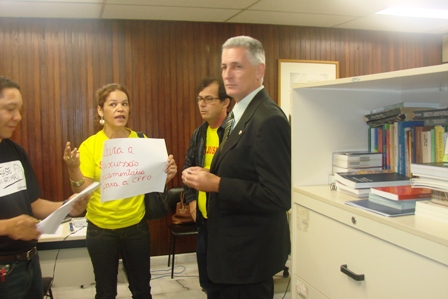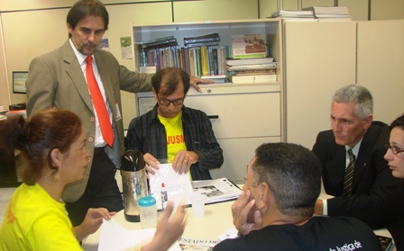 Os sindicalistas e servidores presentes se indignaram. Depois de insistir com deputados da Comissão, eles se reuniram com o líder do Bloco Minas Sem Censura”(PT, PCdoB, PMDB e PRB), Deputado Rogério Corrêa (PT) e sua assessoria, na tentativa de achar um caminho (visando a evitar que, em razão da “diligência”, o PL seja adiado para depois do recesso parlamentar).Após dialogar com os sindicalistas, Rogério ligou para o Desembargador Cláudio Costa, a fim de saber novidades sobre as negociações entre o Tribunal e a Seplag do Executivo (no que tange ao “problemático” artigo). Rogério ainda solicitou que o magistrado recebesse os representantes das duas entidades, para dar aos servidores(as) um “parecer” a respeito das negociações com o Executivo. Na sequência (por volta das 10h30), os sindicalistas seguiram para o TJMG (onde ainda se encontravam quando fechávamos este texto) para conversar com o presidente e solicitar a intervenção dele, garantindo a retomada dos trâmites do PL antes do recesso da ALMG. Os representantes da categoria intencionam voltar à ALMG para uma nova conversa com presidente da CCJ. Seguindo sugestão do deputado Rogério Corrêa, eles reivindicarão que o deputado Sebastião Costa volte a pautar o PL na Comissão, para a próxima terça (12/7/2011). Enquanto isso, a categoria se mobilizará, insistindo, tanto no Tribunal quanto na Seplag do Governo, para que cheguem a um posicionamento consensual sobre suposto obstáculo: ”Artigo 2º” do PL (COM A MÁXIMA URGÊNCIA).