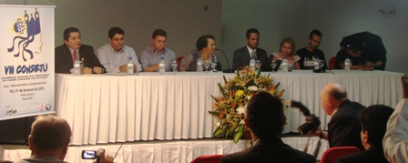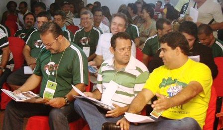 No sábado, 11/2/2012, em Brasília (DF), durante a edição extraordinária do Congresso da nossa Federação Nacional (continuação do 8º Conseju, cuja primeira parte foi realizada em Maceió/AL, em novembro/2011), foi eleita e empossada a nova Diretoria e o Conselho Fiscal da NOSSA Entidade Federal (Fenajud) para o triênio 2012/2015. Conforme o consenso, que fora firmado na reunião preparatória do dia 30/1 (relembre aqui), o SERJUSMIG, agora, integra a diretoria. Representado pelo 1º Vice-Presidente, Luiz Fernando Souza, NOSSO Sindicato ocupa a Vice-Presidência da Federação. O Sindicato da 2ª Instância da Justiça Mineira (Sinjus-MG) também está na diretoria eleita, representado pelo seu Diretor Jurídico, Wagner de Jesus Ferreira (empossado na Secretaria de Assuntos Jurídicos da Fenajud). Na Presidência da Entidade, está o gaúcho Valter Assis Macedo (Coordenador-Geral do Sindjus-RS). Para Luiz Fernando, a presença do SERJUSMIG na Vice-Presidência da entidade nacional é muito valiosa, sobretudo num grupo tão amplamente representado como este ora eleito.