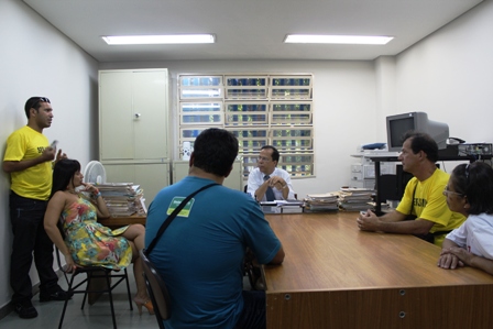 Durante a visita, acompanhados de companheiros/as, os sindicalistas se reúnem com o Diretor do Foro de GV