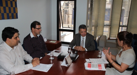 Na terça-feira, 24/4/2012, a Presidente e os Vices-Presidentes do SERJUSMIG, Sandra Silvestrini, Luiz Fernando Souza e Rui Viana, respectivamente, se reuniram com o atual Vice-Presidente do Tribunal de Justiça e Superintendente da Escola Judicial Edésio Fernandes (Ejef) eleito futuro Presidente da Casa, Desembargador Joaquim Herculano Rodrigues. Na oportunidade, os NOSSOS representantes cumprimentaram o Desembargador por sua eleição, e discutiram algumas reivindicações dos (as) Servidores (as) da Justiça de Primeira Instância de Minas Gerais. Confira, abaixo, em tópicos, os assuntos tratados:
