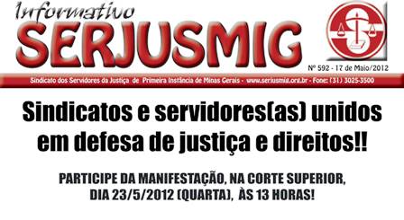 SERJUSMIG, SINJUS-MG e SINDOJUS se uniram para reivindicar o cumprimento dos direitos de todos os servidores do Judiciário Mineiro. Mas esta luta unificada só tem sentido se contar com a efetiva participação da categoria. Convoque a TODOS! Informações sobre reembolso de locomoção, com Elexsandra, pelo telefone (31) 3025-3506. Fóruns e juizados de BH, conforme o número de inscritos, poderão ter vans e ônibus disponibilizados. Clique aqui e leia o boletim convocatório. |