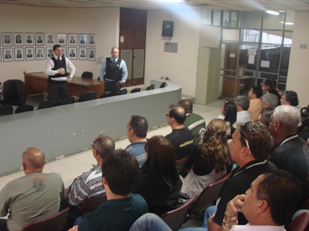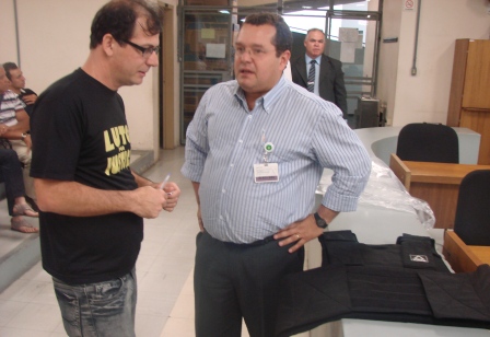 Cinco coletes balísticos que serão usados em diligências externas de risco. Essa foi uma importante conquista dos companheiros (as) Comissários de Contagem que receberam, na segunda-feira, 25/6/2012, os Terceiros-Sargentos Adriano Contadini e Eduardo Benedito, do Centro de Segurança Institucional (Cesi) do Tribunal de Justiça de Minas Gerais (TJMG). O fornecimento dos coletes era uma antiga reivindicação desses servidores que, por meio do Coordenador do Comissariado, Maurício Quirino dos Santos e do Juiz Diretor do Foro de Contagem, Arilson D’Assunção Alves, solicitaram os equipamentos à Corregedoria Geral de Justiça (CGJ/TJMG). O SERJUSMIG, representado pelo seu Vice-Presidente, Rui Viana, e pelo funcionário Franklin Almeida, prestigiou o curso e aplaudiu a conquista dos nossos colegas.