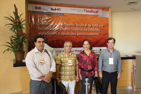 A Presidente e os Vice-Presidentes do SERJUSMIG, Sandra Silvestrini, Luiz Fernando Souza e Rui Viana, respectivamente, participaram nessa quinta e sexta-feira, 28 e 29/6/2012, do “1º Congresso Nacional de Direito Sindical da Ordem dos Advogados do Brasil (OAB)”. O evento, que conta com a presença de renomados palestrantes, debaterá temas de extrema relevância para o movimento sindical. O NOSSO Sindicato destaca a palestra “O Movimento Sindical como Instrumento de Transformação Democrática a partir da Constituição Federal de 1998”, que apresentou uma rica discussão entre os participantes.