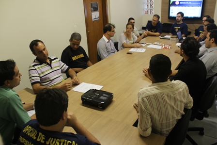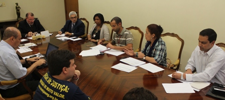 Representantes do SERJUSMIG e do Sindojus-MG reunidos nesta segunda-feira, 6/8/2012