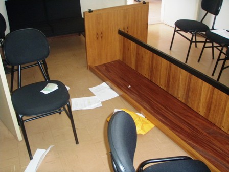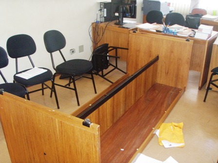 Companheiros e companheiras da Comarca de Canápolis denunciam a falta de segurança que impera no Fórum local, que conta com APENAS UM vigia, e nenhuma outra forma de proteção para servidores e usuários(as). A situação aflige os/as profissionais, sobretudo após o recente (perigoso e lamentável) incidente ocorrido durante uma audiência, na véspera do feriado (6/9/2012). A audiência, realizada por volta das 13 horas, tratava do divórcio de um casal. Durante a sessão, o homem (parte) se alterou com o advogado da oponente, virou a mesa da sala de audiências e agrediu fisicamente o citado advogado (desferindo socos). O ÚNICO vigia que atua no fórum (desarmado) empenhou-se para conter o indivíduo. Mas o “clima” de insegurança afetou a todos. A Oficial de Apoio que trabalhava na digitação da audiência chegou a passar mal. A situação só se acalmou após a intervenção da Polícia Militar (PM) – que demorou quase meia hora para chegar ao local.