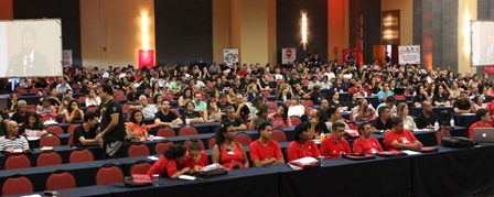 Após o intervalo para o almoço, com as energias renovadas, os quase 500 participantes do “14º Encontro de Delegados do SERJUSMIG” retornaram para uma tarde de mais trabalhos. Por volta das 14h, todos acompanharam a primeira palestra da tarde, ministrada pelo médico – especializado em medicina do trabalho, e pesquisador do Laboratório de Psicodinâmica do Trabalho, ambos da Universidade Federal do Rio Grande do Sul (UFRS), além de assessor médico de diversos sindicatos naquele Estado, Dr. Rogério Dornelles. O médico apresentou os resultados de uma pesquisa realizada com servidores da Justiça Federal no RS, à luz do tema “Adoecimento do Servidor Público e Teletrabalho”. Na oportunidade, foram elencados diversos fatores que provocam esse adoecimento, tais como: a informatização do Judiciário, o teletrabalho, a discriminação, a não realização de pausas durante o expediente, estresse, entre muitos outros. Lamentavelmente, tais resultados são alarmantes. De acordo com Dr. Rogério, foi registrado um aumento expressivo no número de servidores que usam de calmantes, antidepressivos, etc. no seu dia a dia. Some-se, a isto, a “obsessão” por cumprir metas, permanecendo exaustivas horas sentado, sem realizar pausas para descanso. “Realizar pausas durante o expediente de trabalho é fundamental para a nossa saúde mental e visual. Parar os trabalhos durante 10 minutos, a cada 50 minutos trabalhados, é o recomendado para manter a qualidade de vida dos trabalhadores, além de contribuir para afastar doenças trabalhistas”, ressaltou Dornelles.