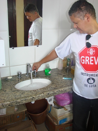 Balde para “suprir” o encanamento defeituoso da torneira