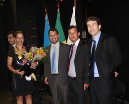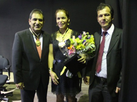 Hoje, a direção do SERJUSMIG e a categoria podem se sentir ainda mais honrados: nessa quinta-feira, 21/2/2013, a presidente do NOSSO Sindicato, Sandra Margareth Silvestrini, foi homenageada durante a solenidade de posse da nova Diretoria do Sindicato da Polícia Federal em Minas Gerais (Sinpef/MG), triênio 2013-2015, realizada no Teatro da Assembleia Legislativa de Minas Gerais (ALMG). Sandra Silvestrini foi a liderança agraciada pela entidade Sinpef/MG, como destaque no movimento sindical mineiro. Além dela, autoridades e pessoas que se destacaram em outras áreas (como o advogado César Brito, ex-presidente da OAB - um dos palestrantes do NOSSO “13º Encontro de Delegados”, realizado no ano passado) também foram agraciados.