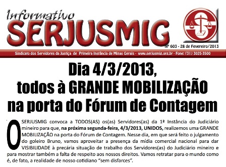 Retorna ao índice de Destaques SERJUSMIG convoca servidores para MANIFESTAÇÃO durante o julgamento do goleiro Bruno