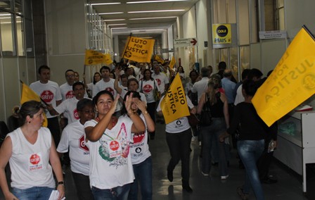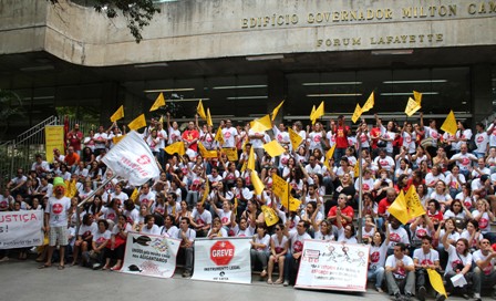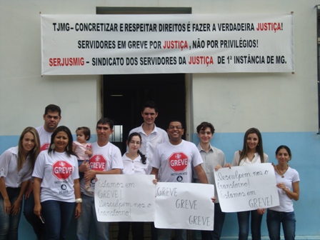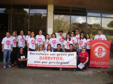 “DISPOSIÇÃO, ENERGIA E GARRA”. Esse foi o clima dos cerca de 500 Servidores e Servidoras da 1ª Instância do Judiciário mineiro que se reuniram em frente ao Fórum Lafayette, em Belo Horizonte, para marcar o primeiro dia da GREVE GERAL por tempo indeterminado da categoria. Durante o Ato Público, os Servidores circularam pacificamente pelos corredores do Fórum convidando os demais colegas a integrarem o movimento. Concentrados, os Servidores deram um “abraço simbólico” no Fórum Lafayette, ocupando as ruas que fazem o entorno do prédio. O SERJUSMIG aplaude a FORÇA e a UNIÃO dos colegas, demonstrada neste primeiro dia de paralisação. Agradecemos a presença e o APOIO do colegas do Judiciário mineiro de 2ª Instância; do Sindicato dos Policiais Federais em Minas Gerais (Sinpef-MG); do Sindicato dos Servidores da Justiça Federal de Minas (Sitraemg) e da Federação Nacional dos Servidores do Judiciário Federal (Fenajufe). A equipe de reportagem da TV Alterosa esteve no local e fez uma cobertura da paralisação. Segundo a equipe, a reportagem será exibida hoje, sexta-feira, 22/3, às 18h45, no “Jornal da Alterosa”. No interior do Estado, assim como na Capital, a adesão foi INTENSA. Em algumas comarcas, foi registrado quase 100% de adesão. Acompanhe aqui, no NOSSO site, mais informações sobre a GREVE GERAL a qualquer momento.