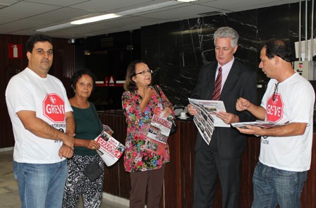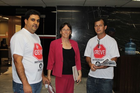Luiz e Rui aproveitaram para convidar os demais parlamentares para comparecerem à Audiência Pública, dia 2 de abril, em que será debatida a real condição de trabalho enfrentada pelos Servidores da 1ª Instância. Além de Rogério e Sebastião, Luiz e Rui também articularam com o deputado Elismar Prado (PT), a deputada Maria Teresa Lara (PT) o assessor da minoria da ALMG, Carlão e a deputada federal Jô Morais (PCdoB). Na oportunidade, Jô reiterou seu TOTAL APOIO à nossa GREVE, disse que, se possível, participará das NOSSAS manifestações na próxima semana, bem como fará um pronunciamento na Câmara dos Deputados, em Brasília, denunciando a real e precária situação da categoria. O SERJUSMIG REITERA A CONVOCAÇÃO: NA TERÇA-FEIRA, 2/4/2013, TODOS À ALMG PARA A AUDIÊNCIA PÚBLICA SOBRE AS NOSSAS CONDIÇÕES DE TRABALHO, FALTA DE PESSOAL, TERCEIRIZAÇÃO E PRECARIZAÇÃO.