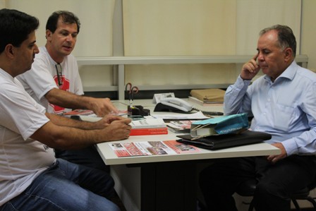 O SERJUSMIG, representado pelos seus Vice-Presidentes, Luiz Fernando Souza e Rui Viana, marcou presença na Assembleia Legislativa (ALMG), na tarde desta quarta-feira, 27/3/2013. O objetivo foi pedir a mediação dos parlamentares, junto ao Tribunal de Justiça (TJMG), quanto a NOSSA GREVE GERAL, no sentindo de buscar soluções quanto às reivindicações dos Servidores da Justiça mineira de 1ª Instância. Para isso, eles abordaram diversos deputados parceiros do NOSSO Sindicato, como Rogério Correia (PT) e Sebastião Costa (PPS), reiterando os motivos pelos quais a categoria decidiu pelo movimento paredista. Além disso, os NOSSOS representantes pediram o apoio dos parlamentares quanto aos Projetos de Lei (PL) de interesse da categoria, atualmente em tramitação naquela Casa (PL 3342/2012 e PL 3540/2012).