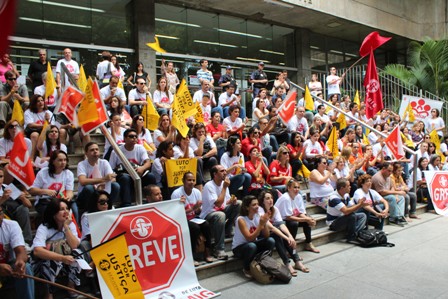 Retorna ao índice de Destaques SEGUNDA, 1º/4: Em greve, Servidores LOTAM a entrada do Fórum Lafayette