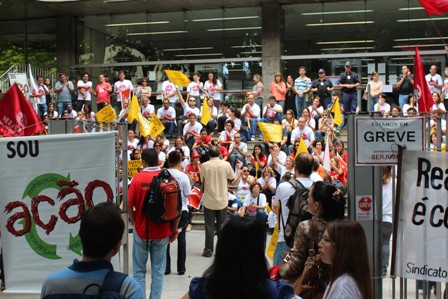 Para manifestar TOTAL APOIO à NOSSA GREVE, compareceram na manifestação desta segunda-feira, a presidente do Sindicato Único dos Trabalhadores da Educação (Sind-UTE/MG) e da Central Única dos Trabalhadores - seção Minas Gerais (CUT/MG), Beatriz Cerqueira (leia aqui a cobertura do site da CUT-MG sobre o nosso movimento); o presidente da 155ª Subseção da Ordem dos Advogados do Brasil em Minas Gerais (OAB/MG), Dr. José Coelho Júnior; e o deputado federal Padre João (PT-MG). O SERJUSMIG parabeniza a TODOS os companheiros que, mesmo diante de toda pressão, ameaças e condutas antissindicais, continuam firmes na GREVE, conscientes que são de que não estão cometendo nenhuma ilegalidade e, sim, exercendo um DIREITO CONSTITUCIONAL. E lembramos que, amanhã, terça-feira, temos mais uma atividade da GREVE: TODOS À ALMG, NA AUDIÊNCIA PÚBLICA QUE DISCUTIRÁ AS NOSSAS CONDIÇÕES DE TRABALHO! A presença de CADA UM é ESSENCIAL para mostrarmos a FORÇA e a UNIÃO da NOSSA categoria. O Ponto Paralelo estará à disposição dos grevistas no “cafezinho” da ALMG (localizado no subsolo da Casa).