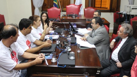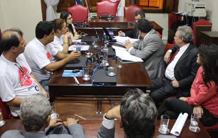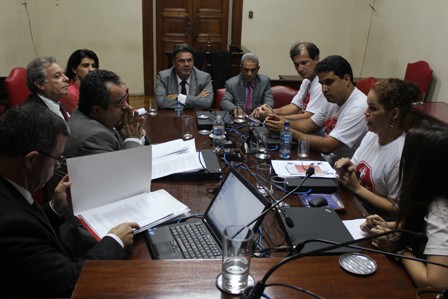 A Administração do Tribunal de Justiça basicamente reiterou posicionamentos apresentados na primeira reunião, realizada em 2/4, entre as entidades e representantes da Casa. Essa é a conclusão-primeira sobre resultado da reunião realizada, na noite dessa quarta-feira, 3/4/2013, entre os Sindicatos e representantes da Comissão de Orçamento (desembargadores) e das áreas técnicas de Planejamento, Finanças e Recursos Humanos do TJMG. A atividade que, conforme informáramos, objetivou dar sequência à negociação de 2/4, foi encerrada depois das 22 horas. Na oportunidade, as entidades receberam uma proposta, agora formal (que pode ser lida aqui e aqui), e sobre a qual - segundo os técnicos do Tribunal - não há mais como avançar. Tal proposição está sendo avaliada pela Assessoria Jurídica do SERJUSMIG, e pelo assessor técnico do SERJUSMIG/Sinjus-MG, o economista do Departamento Intersindical de Estatísticas e Estudos Socieconômico (Dieese), Fabrício Cruz. Eles avaliam, especialmente, eventuais prejuízos à carreira dos Servidores (devido à diminuição - de 3,26% para 3,05% dos índices entre padrões 28 ao 65). Conforme informáramos, anteriormente, essa nova reunião como TJMG, visou a dar sequencia àquela ocorrida na terça-feira, 2/4/2013.