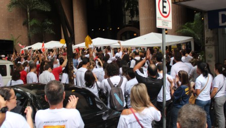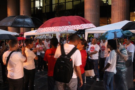 Servidores da 1ª Instância fazem Ato Público na porta do TJMG antes do início dessa reunião