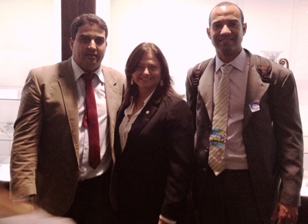 Na foto acima, os representantes mineiros (Luiz/SERJUSMIG e Wagner/Sinjus-MG) ao lado da deputada Alice Portugal, com quem se reuníram após o Plenário dessa terça(18)