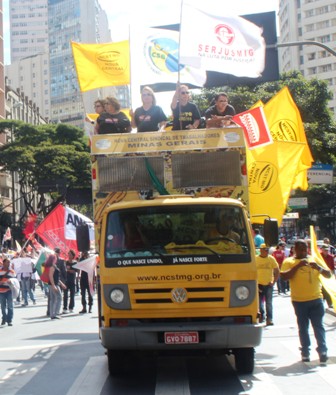 Carro de som da Nova Central Sindical, SERJUSMIG e dirigentes do Sisipsemg.