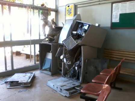 A falta de segurança nos prédios do Judiciário mineiro provocou mais um ato de bandidos na madrugada da última sexta-feira, 2/8/2013. Por volta das 4h15, assaltantes explodiram dois caixas eletrônicos localizados no Fórum da Comarca de São Sebastião do Paraíso. O prédio, que NÃO possui nenhum tipo de vigilância (somente um guarda terceirizado na entrada do prédio, das 12h às 18h, segundo os próprios servidores da Comarca), tornou-se um alvo fácil para os bandidos. Por sorte, não havia ninguém nas dependências do Fórum durante a madrugada, porém, a força da detonação da bomba causou grandes danos ao prédio do Fórum, como buracos e rachaduras nas paredes. Na sexta-feira, o expediente no Fórum funcionou normalmente e nenhuma medida de segurança havia sido anunciada pela Administração do Tribunal de Justiça (TJMG).