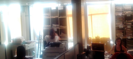 A mudança tinha de ocorrer depois de as obras estarem prontas, sem expor os servidores(as) a barulho, poeira, agentes tóxicos e afins. Tirar os trabalhadores(as) de um lugar ruim e passá-los para um pior, por causa da poluição do ambiente; do cheiro de produtos químicos; da poluição sonora; não resolve e sim agrava a situação. A realidade ora verificada em Betim é prova disso. No momento, naquela Comarca, podemos afirmar que, de positivo, há apenas o espaço maior, em relação ao prédio anterior. Além da poeira; da sujeira; ainda há um excesso de calor, com muito sol nas secretarias (e estamos em PLENO INVERNO, heim!) - as temperaturas médias tem ultrapassado 30 graus e a sensação térmica é superior a isso. Não existe ar-condicionado em nenhuma secretaria, apenas ventiladores, espalhando poeira e ar quente. Tal cenário tem levado ao adoecimento de muitos servidores(as) – e com freqüência cada vez maior.