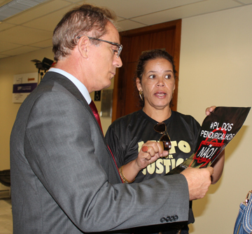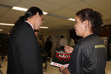 O SERJUSMIG acompanhou toda a leitura e, imediatamente, a presidente do Sindicato, Sandra Silvestrini, junto do vice-presidente Rui Viana, deram início ao trabalho de corpo a corpo com os deputados, reivindicando dos parlamentares apoio para que o projeto seja submetido ao debate com a sociedade, por meio de audiência pública, e evitando a sua aprovação de forma atropelada e sem a participação de todos aqueles que serão afetados diretamente por ele: Sindicatos, OAB e a própria sociedade.