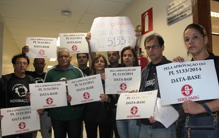 Na tarde de hoje, dirigentes e representantes do SERJUSMIG estiveram na Assembleia Legislativa de Minas Gerais para cobrar dos integrantes da Comissão de Administração Pública a votação do PL 5133/2014, que trata sobre a revisão-geral dos vencimentos dos servidores do Judiciário mineiro (data-base de 2014).