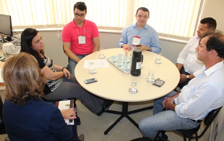 Na tarde de hoje, o vice-presidente do SERJUSMIG Rui Viana, acompanhado pelos escrivães Eduardo Couto, da comarca de Buritis, Kleber Martins, de Bonfinópolis de Minas, e Teodoro Estrela, de Arinos - que estão em Belo Horizonte até a próxima sexta-feira para participarem de uma Atualização Gerencial do Interior (Agir) - se reuniram durante um intervalo do treinamento com a gerente de Saúde no Trabalho (GERSAT) do TJMG, Jeane Machado, e a coordenadora de Segurança do Trabalho, Ana Maria Cassimiro, para discutirem medidas capazes de garantir uma solução alternativa para o problema da falta de médico perito na Regional de Saúde de Paracatu.