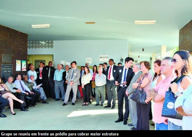 Mais de duzentos advogados e clientes protestaram nesta quinta em frente ao Fórum Desembargador Drumond, que possui cerca de 50 mil processos parados em função do déficit de magistrados