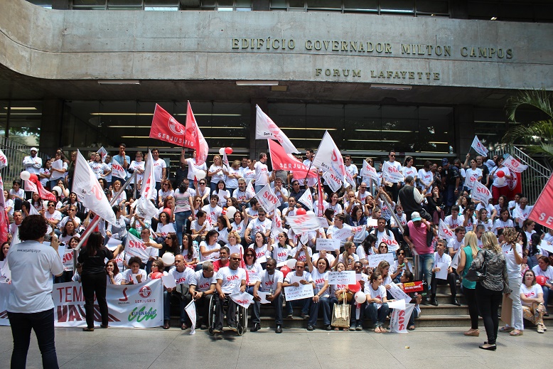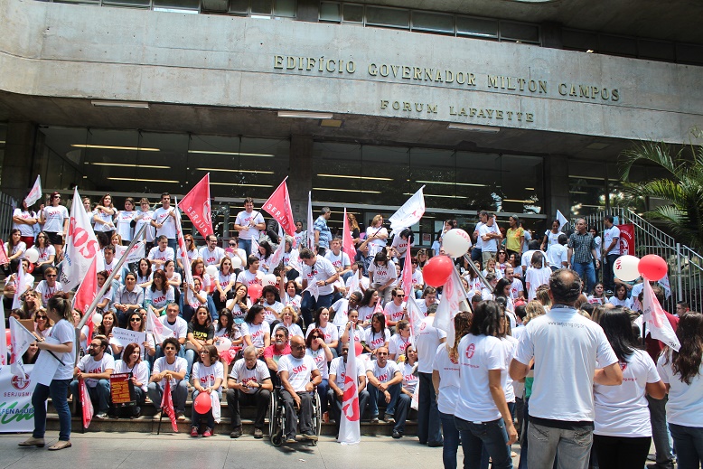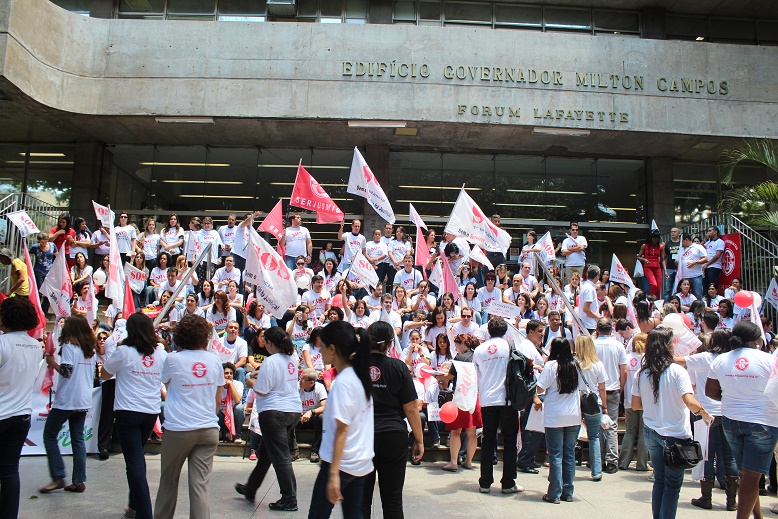 Em Belo Horizonte, cerca de 800 trabalhadores da 1ª Instância se reuniram em frente ao Fórum Lafayette, em um ato público que começou ao meio-dia e seguiu até às 15h.