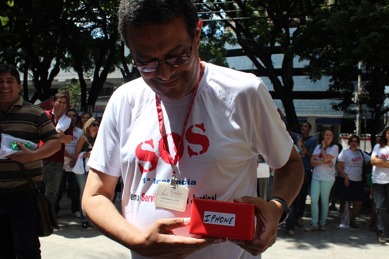 O SERJUSMIG, que este ano optou por não patrocinar as comemorações oficiais do TJMG relacionadas ao Dia do Servidor, em virtude do crescente sentimento de desmotivação que vem tomando conta da maioria dos Servidores nas últimas administrações do TJMG, direcionou os recursos que ora seriam aplicados nas comemorações oficiais promovidas pelo TJMG para a compra de brindes que foram sorteados durante o ato de hoje, a Servidores lotados em todas as Comarcas do Estado, inclusive aposentados.