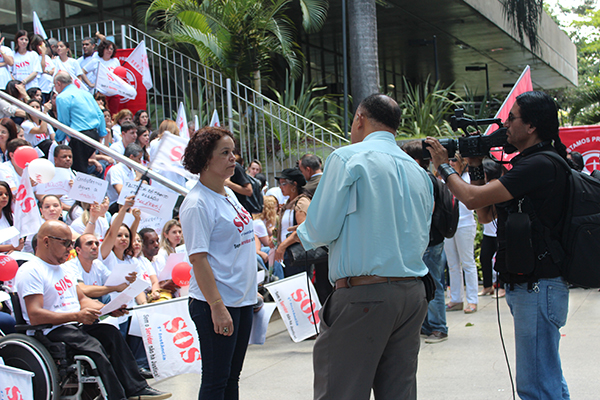 A equipe de reportagem do Programa Segurança e Cidadania esteve em frente ao Fórum Lafayette, na tarde do dia 29 de outubro, para falar com a presidente do SERJUSMIG, Sandra Silvestrini, sobre o objetivo da manifestação realizada na data, em prol da valorização da carreira do servidor público. |