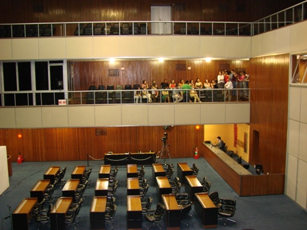 A sessão ordinária das 14h de hoje, foi aberta e encerrada imediatamente devido à falta de quorum dos deputados.