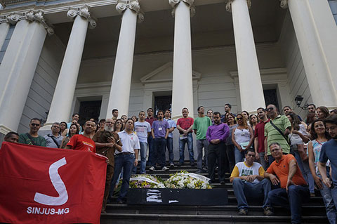 Logo após a AGE realizada pelo Sinjus, cerca de 130 servidores da 2ª Instância saíram do auditório da Associação Médica (onde estava sendo realizada a Assembleia) e realizaram um cortejo fúnebre, marchando por toda a Avenida João Pinheiro, passando pela rua Goiás (em frente aos anexos I e II) e terminando em frente ao Palácio da Justiça, na avenida Afonso Pena, onde, naquele momento, ocorria uma sessão do Órgão Especial. A caminhada simbólica representou a morte da democracia, no caso, a falta de diálogo e tato do desembargador presidente do TJMG, Pedro Bitencourt Marcondes, assim como suas atitudes antissindicais, como mandar cortar os 22 dias dos grevistas da 2ª Instância que participaram da greve de 2011. "Quero ver se vão cortar o ponto dos desembargadores que faltam às sessões do Órgão Especial", reagiu o coordenador-geral do Sinjus (conforme ata de sessão do dia 11/03, publicada no Diário Oficial de 25/3.