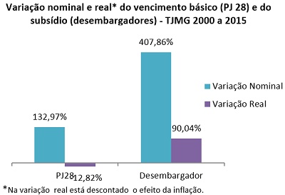 No caso da magistratura, um desembargador recebia R$5.999,86 em 2000, e passou a receber R$30.471,11 em 2015, um aumento nominal de 407,86%, que resulta em um ganho real acumulado da ordem de 90,04% no período em questão.