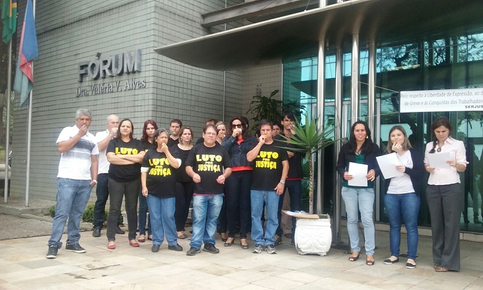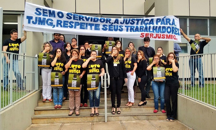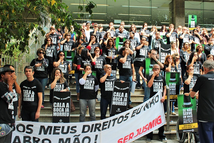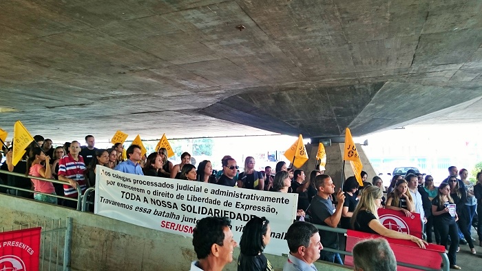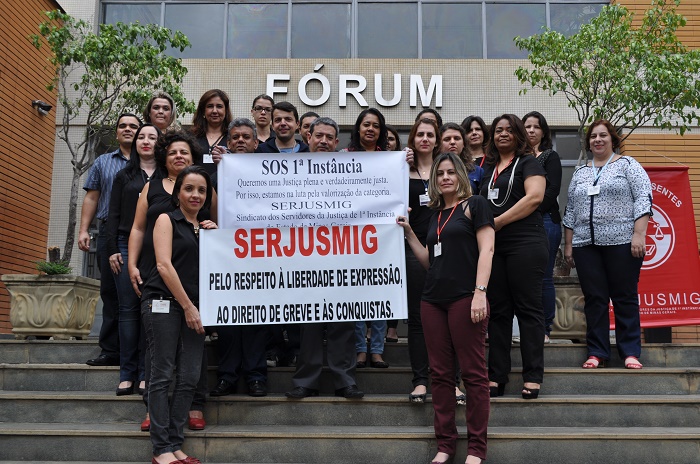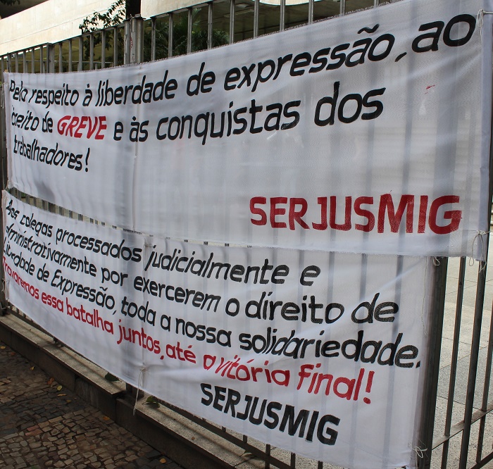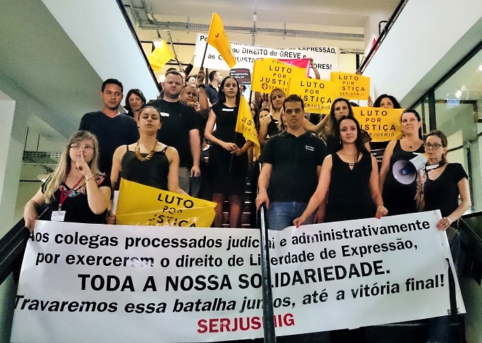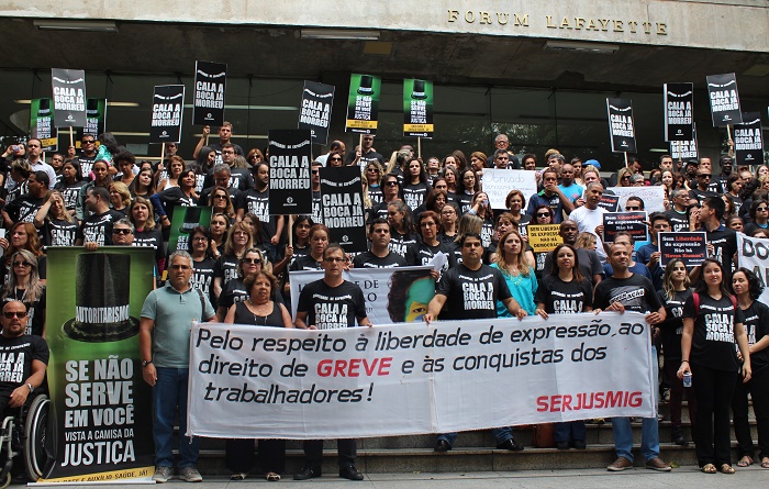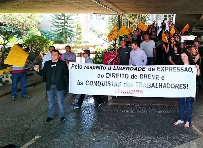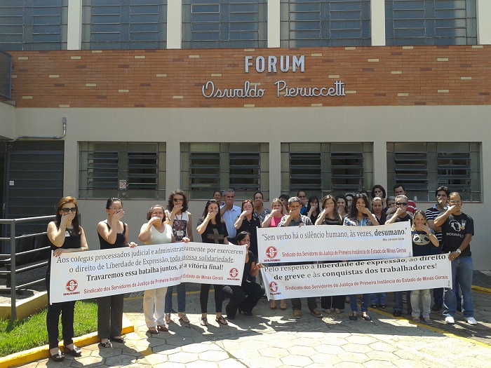 No início da tarde de hoje, centenas de Servidores se reuniram em frente ao Fórum Lafayette em um Ato Público organizado pelo SERJUSMIG, em defesa da liberdade de expressão, do direito ao exercício de greve e da pauta de reivindicações da categoria.