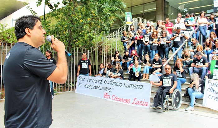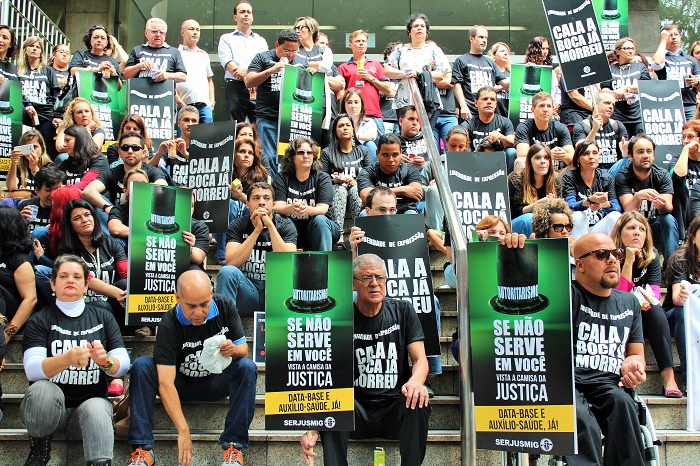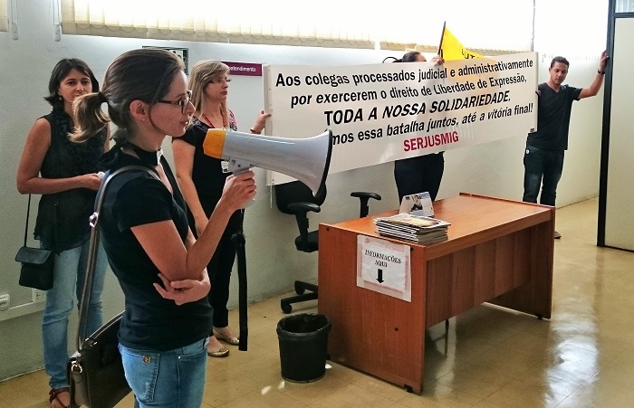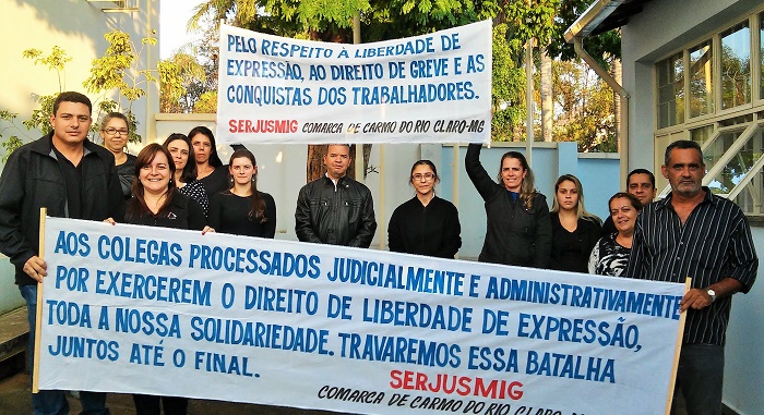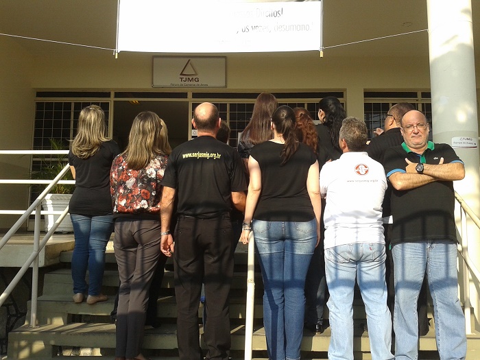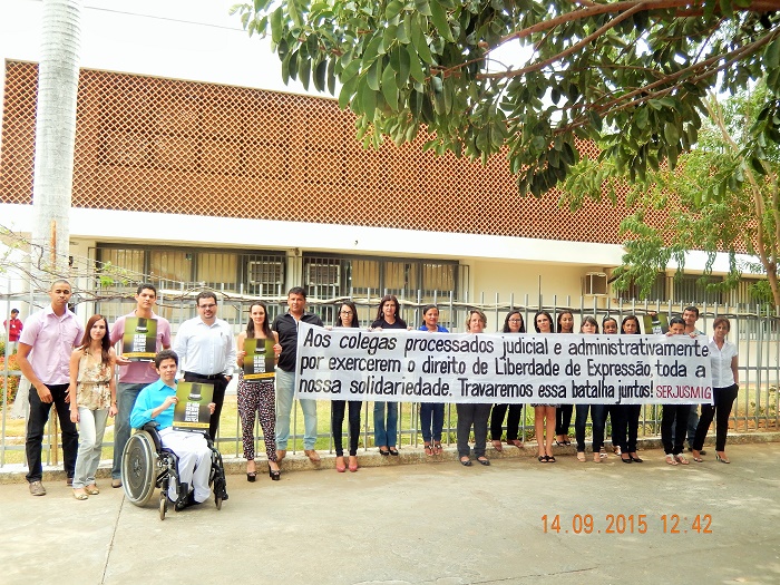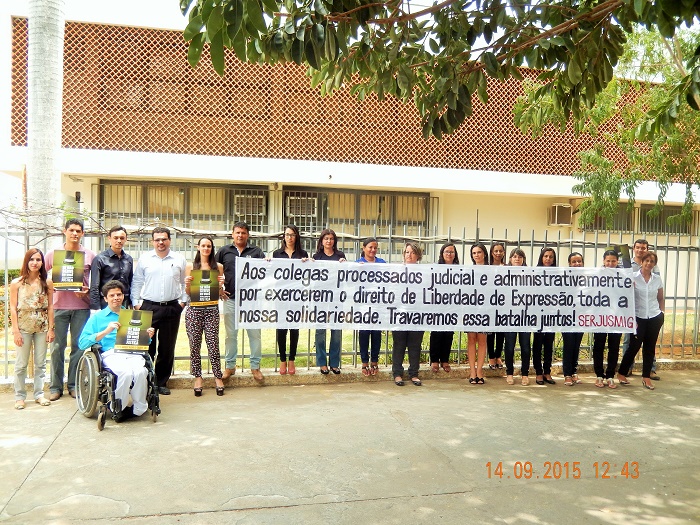 O ato de hoje foi, principalmente, em solidariedade aos colegas que estão sendo processados pelo atual ocupante do cargo de presidente do TJMG por protestarem contra os atos da atual gestão do Tribunal. Além deles, o SERJUSMIG e a presidente do Sindicato, Sandra Silvestrini, também estão sendo processados pelo presidente, sendo que a AMAGIS processou o Sindicato.