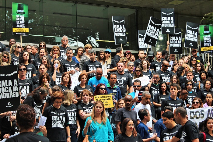 Impedir que a mordaça seja usada para calar as manifestações legítimas da categoria foi o compromisso firmado por todos ao final do Ato.