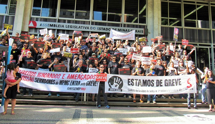 Na tarde de hoje, centenas de trabalhadores do Tribunal de Justiça e do Ministério Público de Minas Gerais aderiram à greve das categorias e se reuniram em um ato público, desta vez realizado nas escadarias da Assembleia Legislativa.